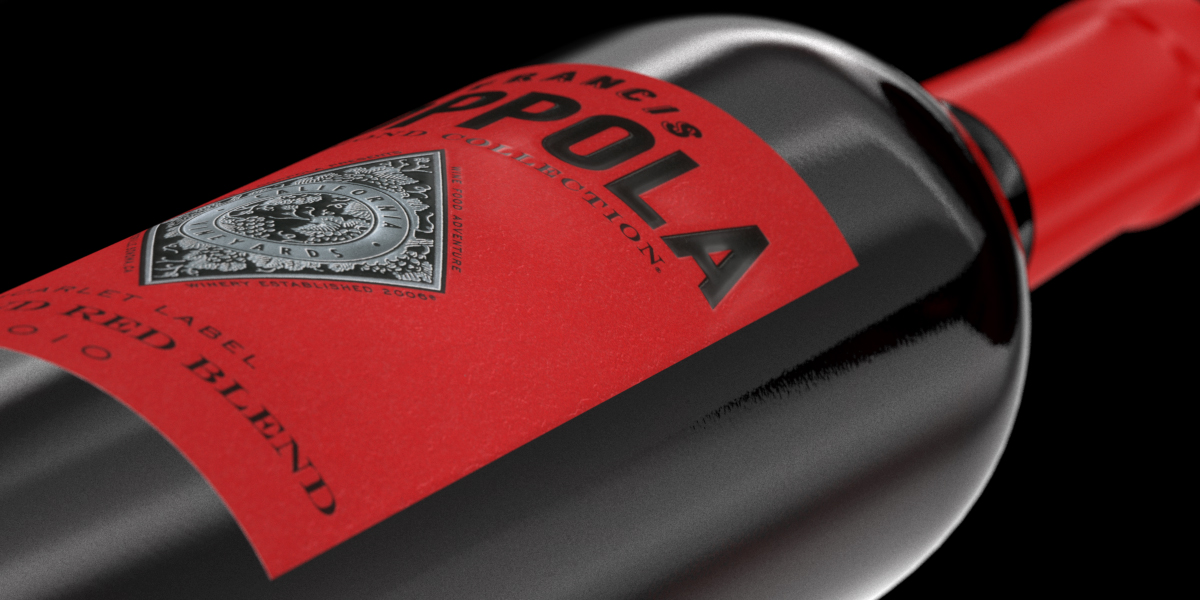 Roman Coppola wanted me to create a sort of neo-air brushy styled array of Coppola wines that would be used on billboards, print, or other types of media. One of the ideas here was to give a hint of the brand, without being too direct or showy. The second idea was that because all these shots would be taken from still shots from a video (the video hadnt been rendered yet) the bottles needed to look like they were falling through space while slightly rotating or spinning.